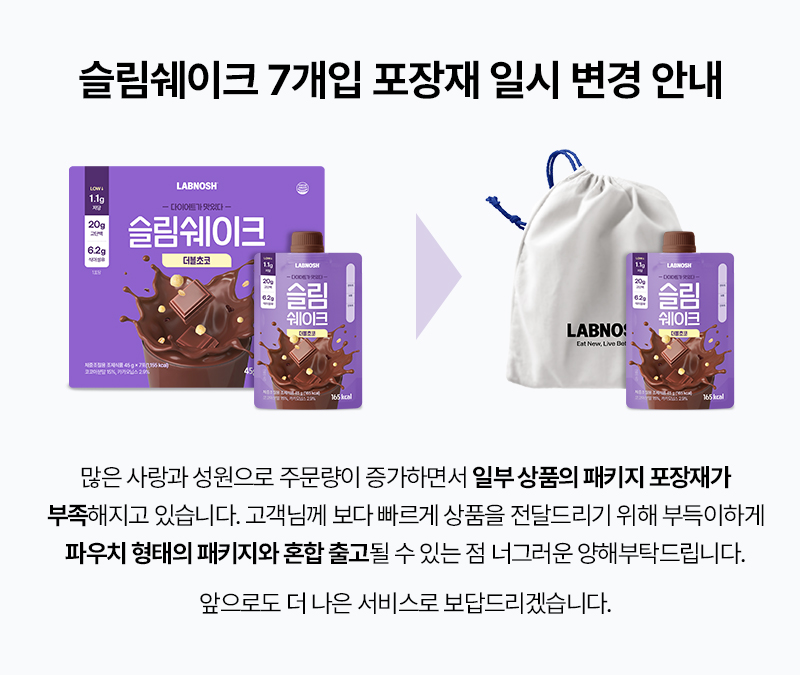 * 슬림쉐이크 7종 혼합은 별도 파우치에 포장 제공