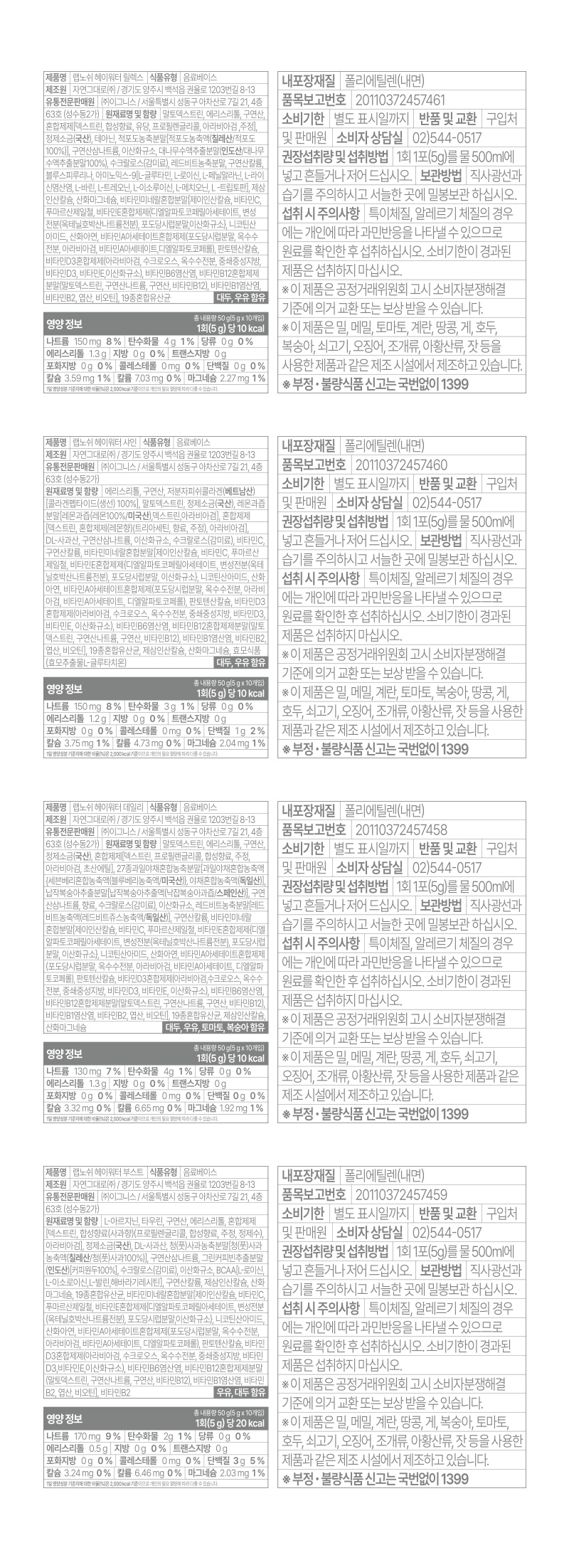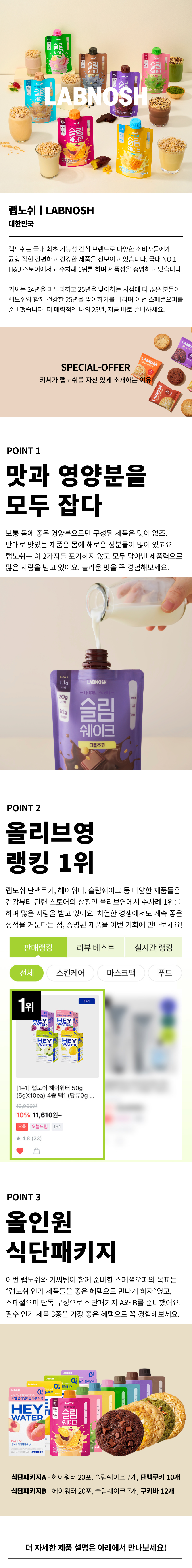아래 제품상세는 슬림쉐이크, 단백쿠키, 헤이워터