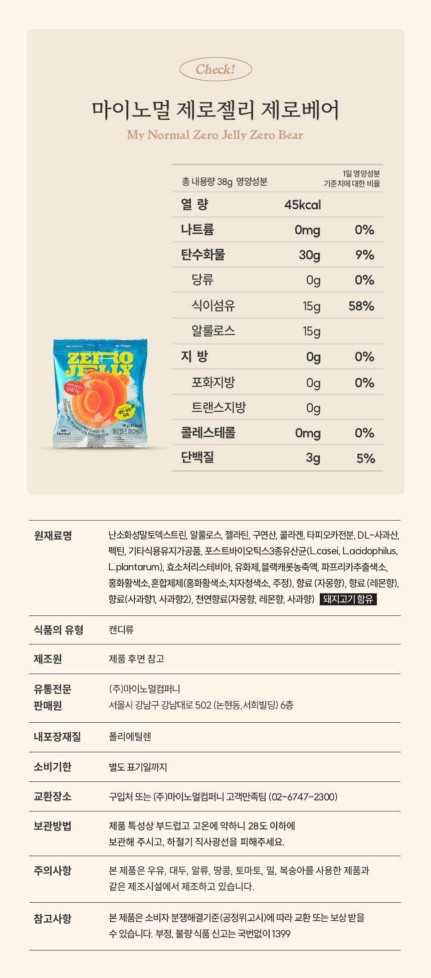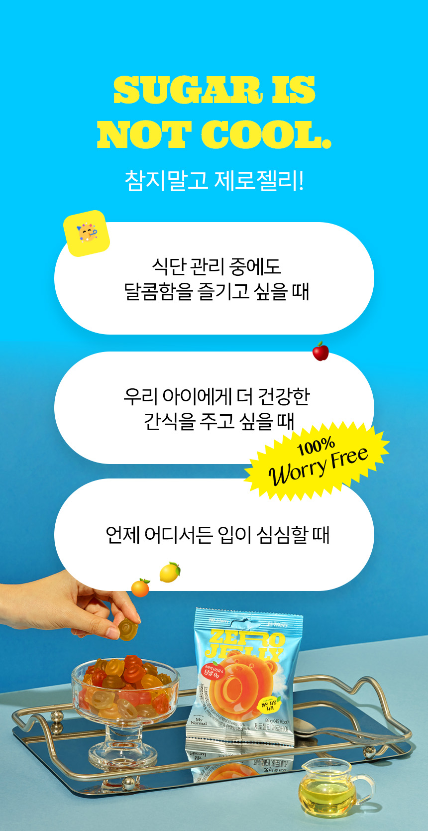 - 당류 0g, 한 봉지에 단 45kcl